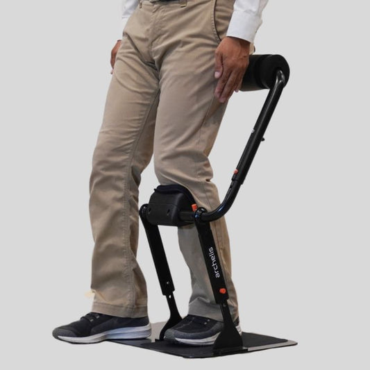 スタビハーフを見るスタビハーフは、スネやヒザをやさしく支えることで体重を分散し、足裏への負荷を最大30%軽減します。コンパクトな設計で、工場、レジ、キッチンホール、受付、警備など、さまざまなシーンでの使用に最適です。
